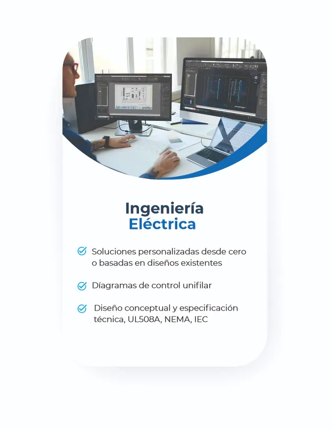 •  Diseño conceptual y especificación técnica, UL508A, NEMA, IEC